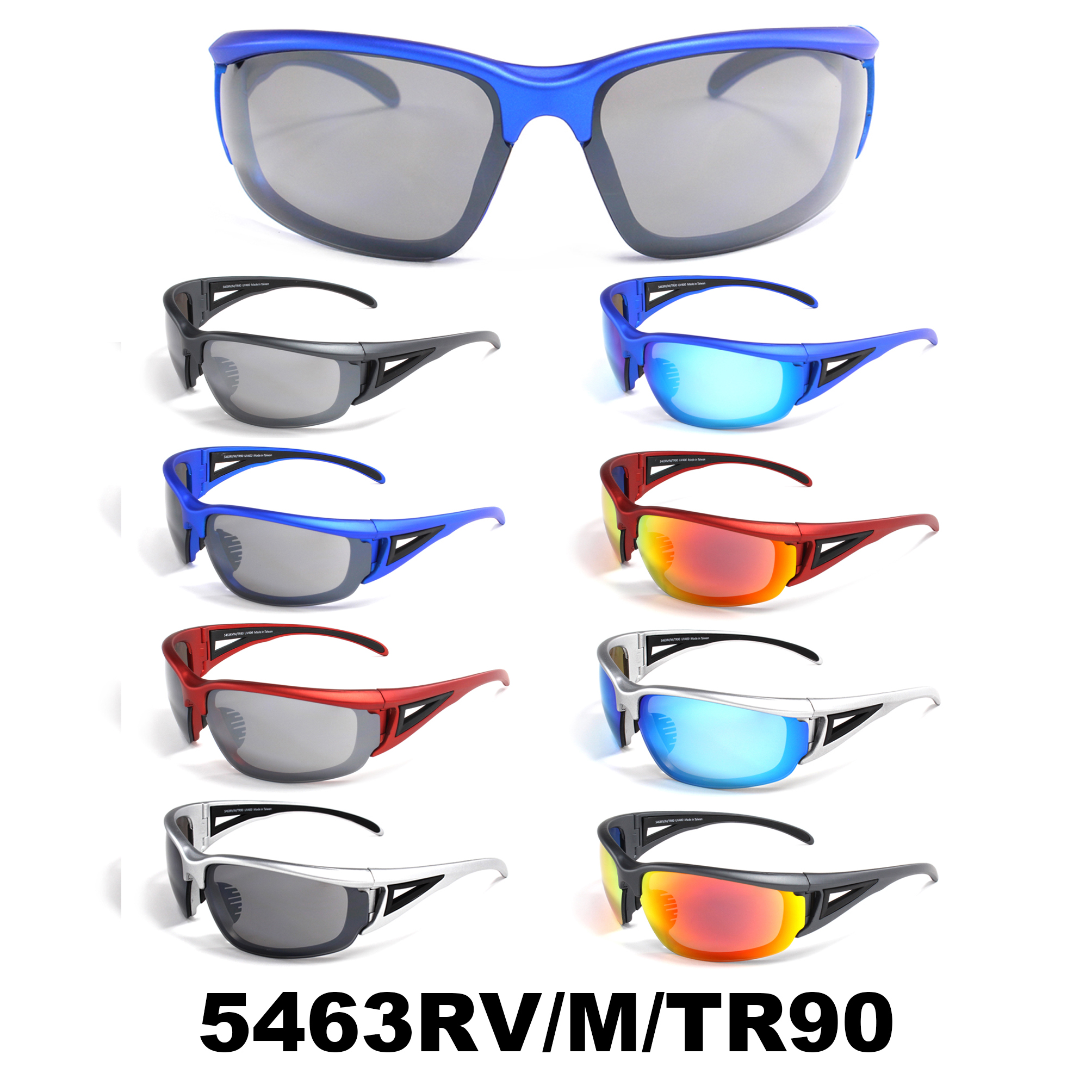 Sports Shield with TR90 Frame. RV and Smoke lens. Assorted colors. Sold by the dozen. Price subject to change.