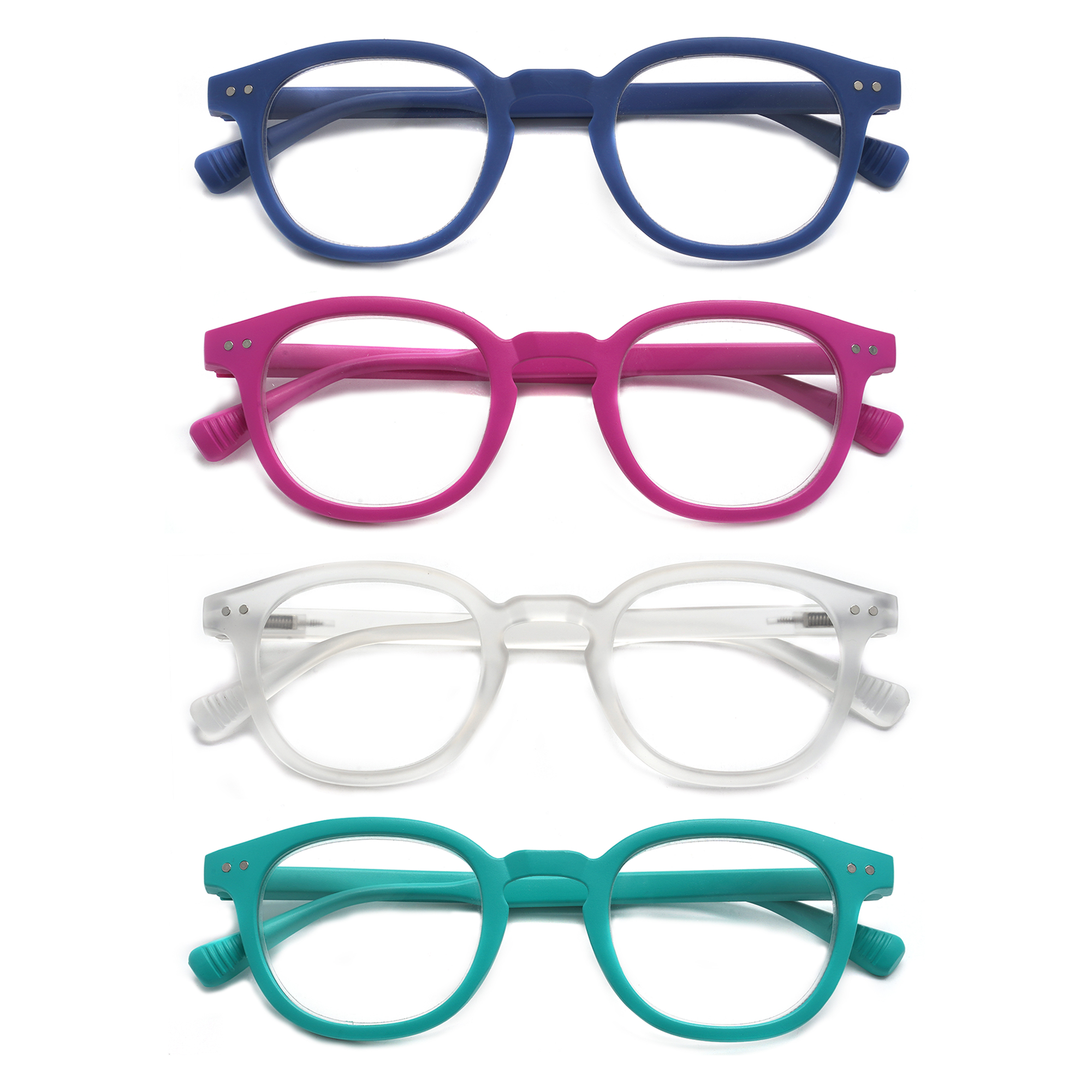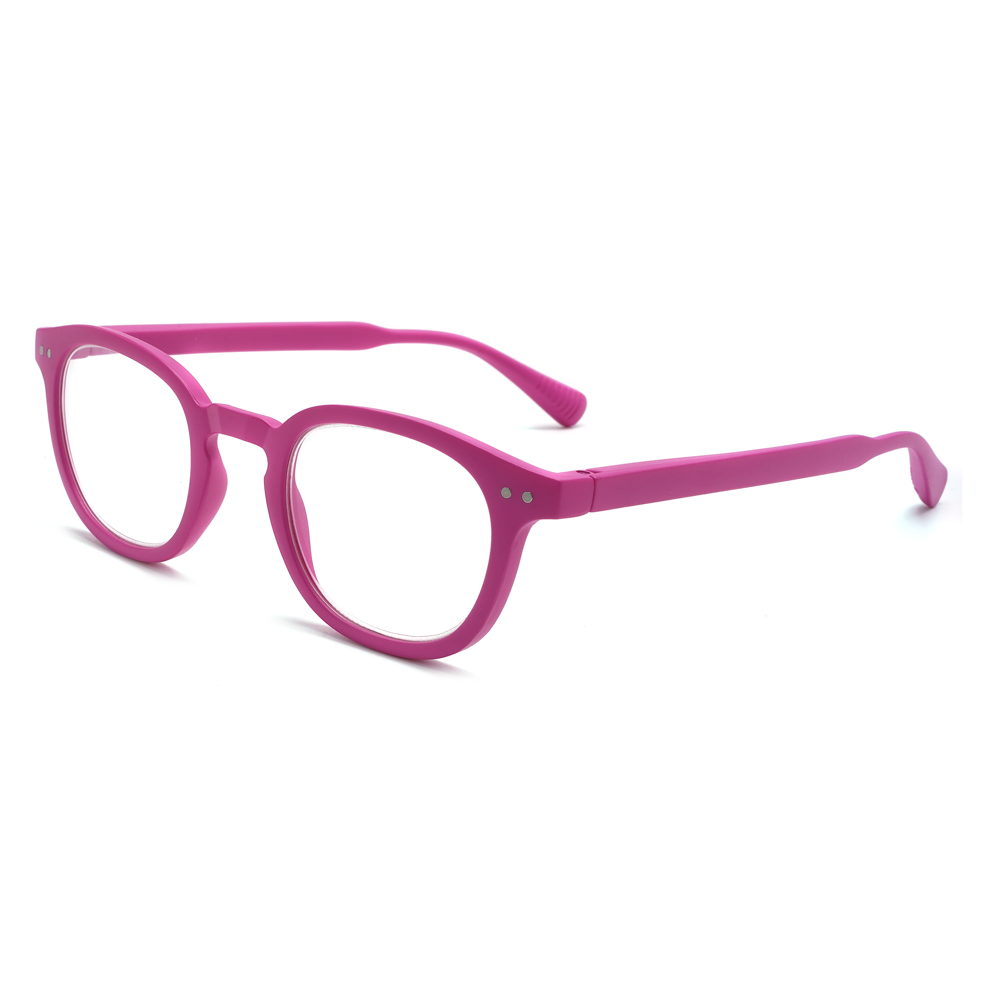 Soft Touch Plastic Frame, Spring Temples with Fully Magnified Lenses. Sold by the dozen. Price subject to change.