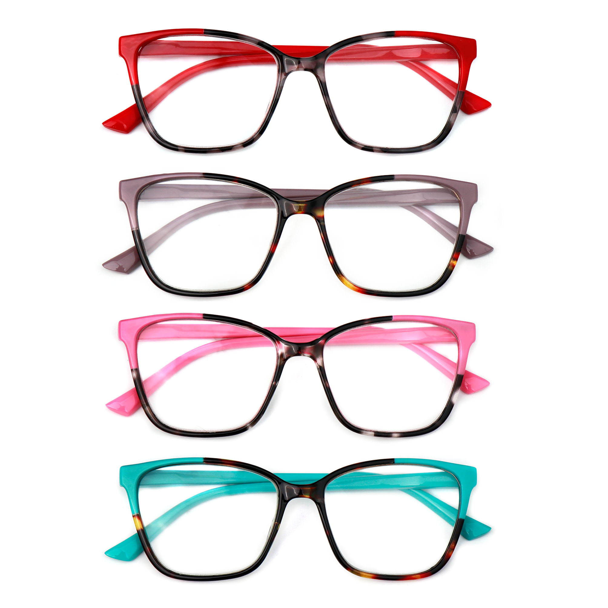 Plastic Frame, Spring Temples with Fully Magnified Lenses. Sold by the dozen. Price subject to change.